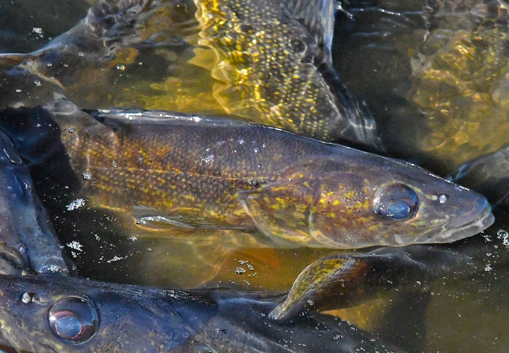 image links to fishing report about walleye spawning, water levels and season outlook from Grand Rapids