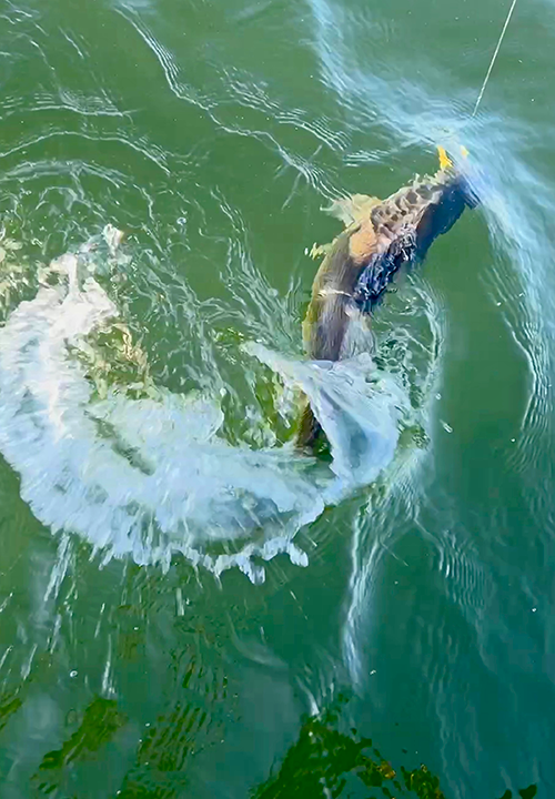 As easy as finding them was, catching them was more complicated. They were flighty, and moving constantly, so stopping, spot-locking and fishing vertically was ineffective. Every time I located a small pack of fish, we’d catch one, and then watch the screen of my graph go blank; that was one challenge.